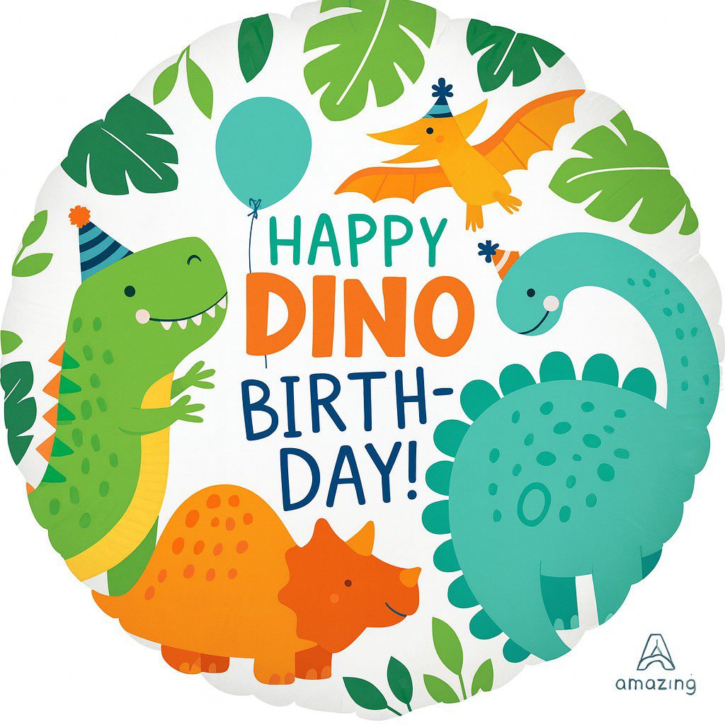 Happy Dino Birthday 46 cm – Bunter Dinosaurier Ballon für fröhliche Partys