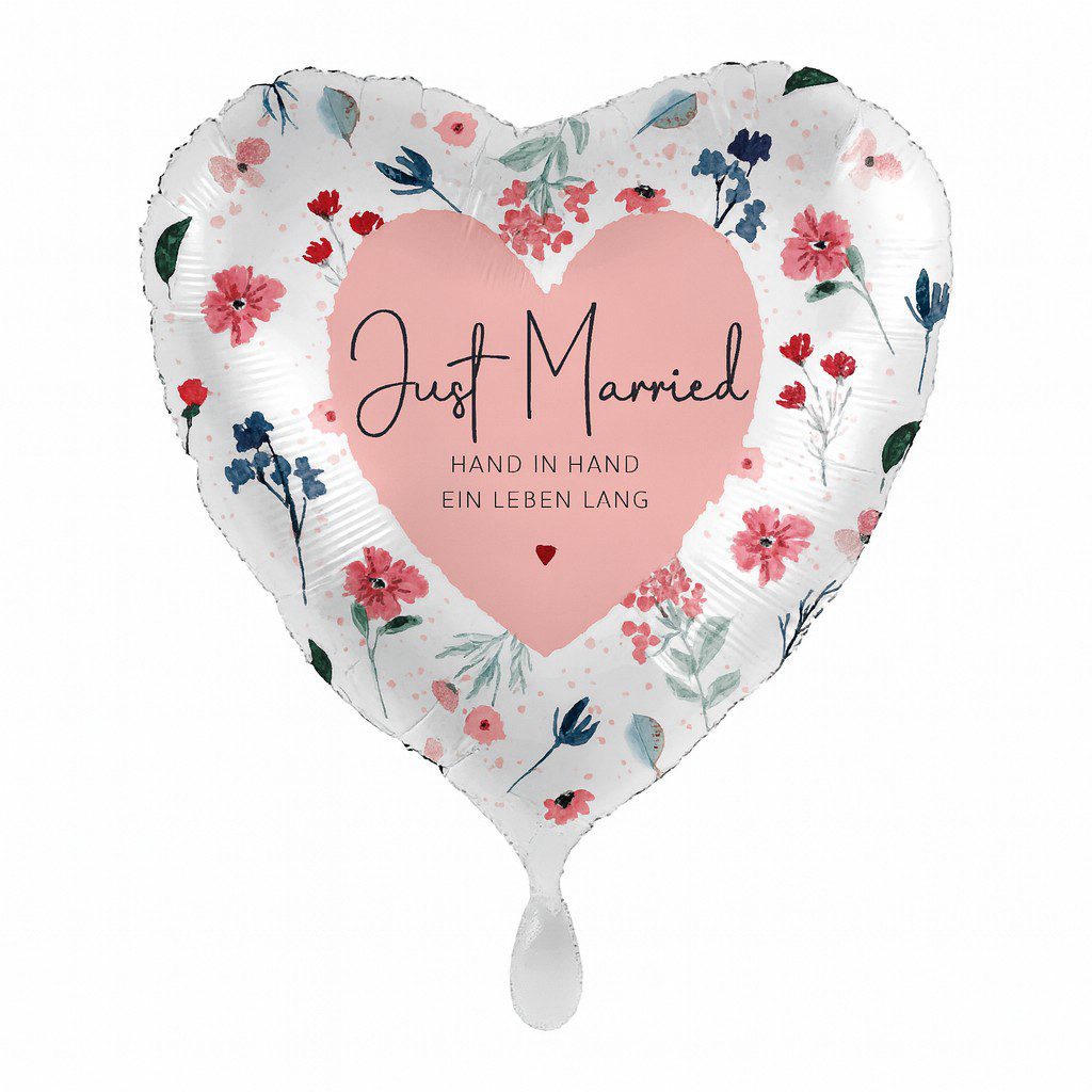 Just Married Hand in Hand ein Leben lang Ballon 43cm – romantische Hochzeitsdeko mit Herz