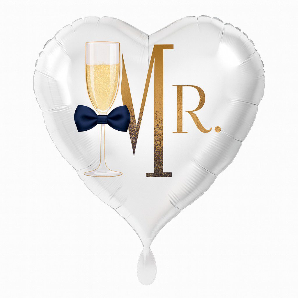 Gerade bei romantischen Feiern wie Hochzeiten oder Verlobungen eignet sich der Ballon hervorragend. Die Kombination aus dem klassischen Sektglas und der eleganten Fliege symbolisiert Feierlichkeit und Zusammenhalt. Als Teil einer Paar-Dekoration, kombiniert mit dem Pendant „Mrs. Sektglas mit Masche“, entsteht eine harmonische Gesamtwirkung, die deine Feier stilvoll abrundet.