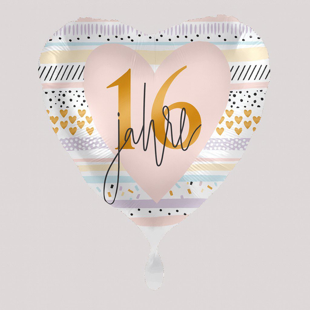 Die Zahl „16“ hebt den besonderen Anlass hervor, während die Herzform eine liebevolle Botschaft transportiert. So wird der Ballon zu einem Symbol für die Bedeutung dieses Meilensteins im Leben des Geburtstagskindes.
