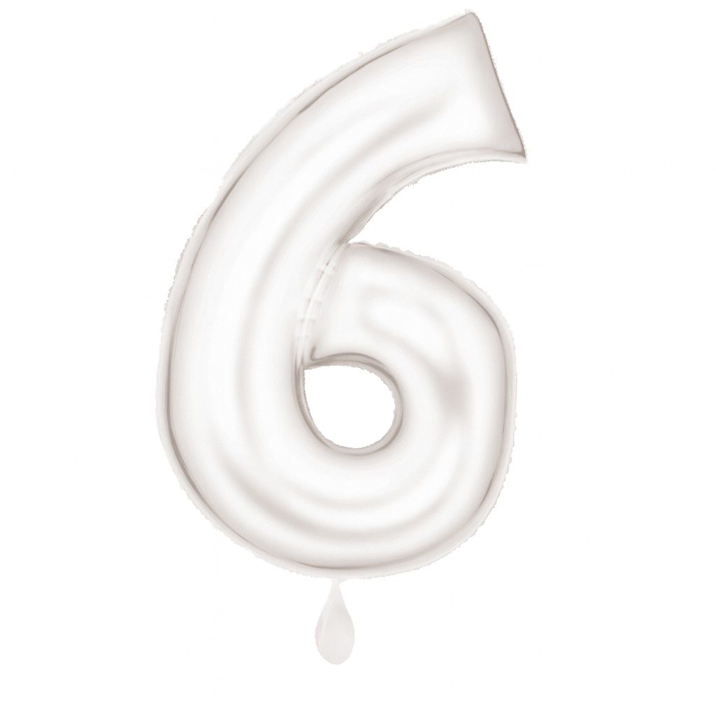 Zahlenballon XL 86cm Weiß matt Zahl 6